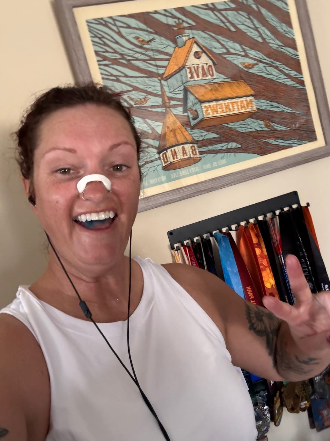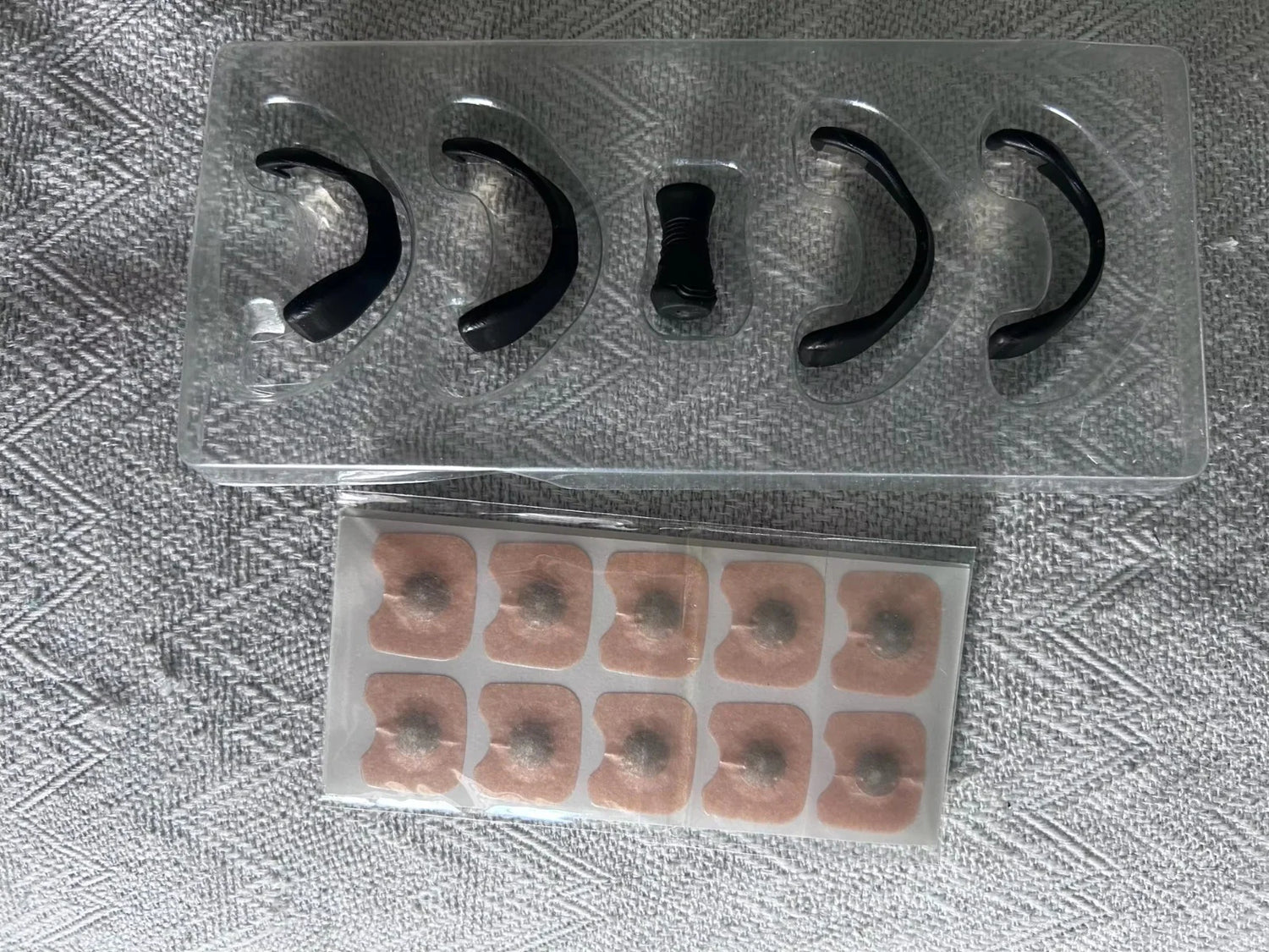 - Use the magnetic applicator to place the adhesive tabs on each side of your nose.