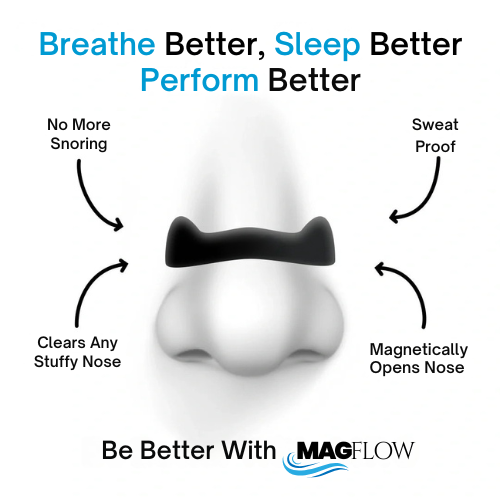 The new standard in breathing. Eliminate nasal blockage, reduce snoring, and boost airflow for peak exercise performance and restful sleep. Magflow boosts nasal airflow by up to 88%, helping you enjoy better performance and Snore-Free, Restful Sleep.