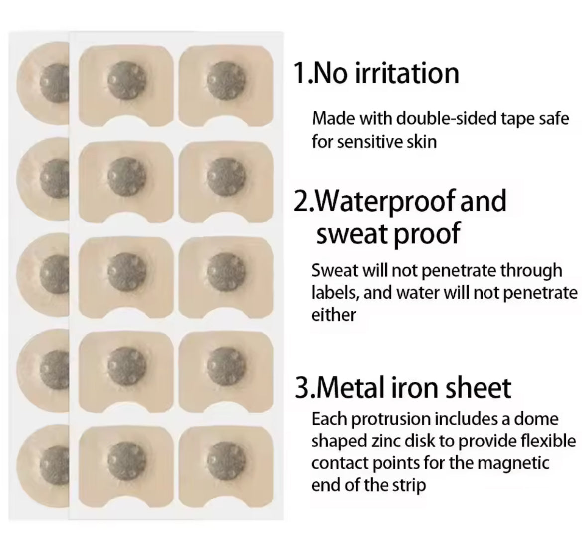 The strips use magnets to gently pull the nasal passages open, increasing airflow. you apply the magnetic tabs to the sides of your nose, and the nasal strip connects to each tab, ensuring a secure fit that lasts all day and night.