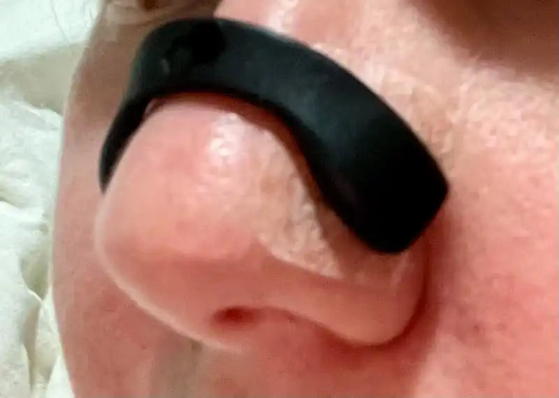 - Use the magnetic applicator to place the adhesive tabs on each side of your nose.